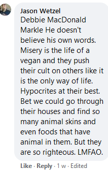 THIS IS BIG SEXY, UNAPOLOGETIC IDIOT THAT TROLLS VEGANS SPECIFICALLY TO OFFER AD HOMINEM DRIVEL AND TO MOCK THE MURDER OF ANIMALS, USING ANIMAL FATS V VEGGIES AND FRUITS AS AN OBSCURE RATIONALE TO JUSTIFY HIS DIM-WITTED LINE OF ARGUMENT. BELOW IS A SELECTION OF HIS MOST ABSURD COMMENTS WITH A FEW BY A LADY WHO BELIEVES HARMING VEGETABLES IS ON A PAR WITH HARMING ANIMALS.