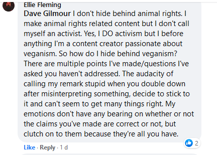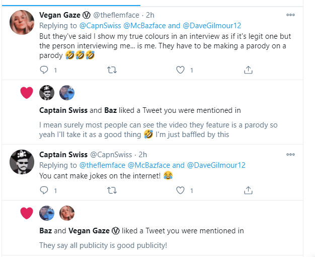 This lady trades under the name ‘VEGAN GAZE’ @theflemface on Twitter. She has already been exposed in an interview where she admitted she was a con-artist once she knew the game-was-up. Vegan Gaze assures me that it is a ‘parody’ about ex-vegans and I don’t know how I missed that in the title and credits of the film. It begs-the-question: why? Why is it necessary to make a spoof on corrupt fake vegans? It only serves to bring veganism into disrepute. As for ‘spending so much money on her channel than she earns,’ is that why she has a ‘Patreon’ account? Either way, she is poncing. What’s really amusing is the cronies hoping to park their shoes under her bed. She and they are so triggered they are retweeting and ‘liking’ giving more publicity to the post.