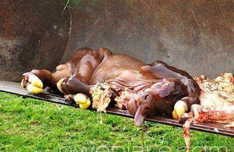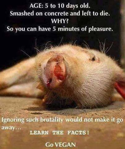 This picture, what can you tell me about it? I’ll tell you then. After 4 years of rape, its milk stolen and babies kidnapped, mum is sent to slaughter, her body broken. Her milk still flows, her unborn calf still living. Mum is mutilated and the calf is binned. Courtesy the RSPCA